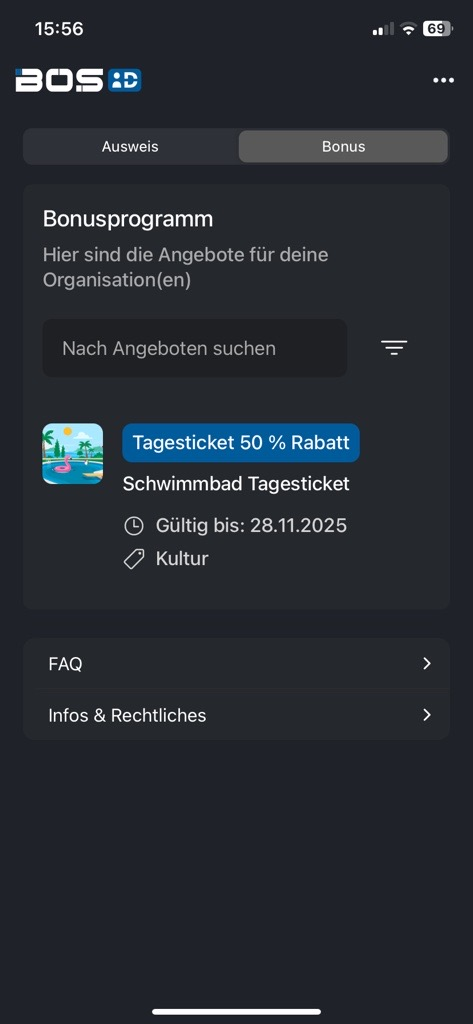 ![]() | zum Anzeigen des Bonus in der BOS-ID App benötigen Ihre Anwender die aktuelle App-Version (im App-Store und Play-Store kostenfrei verfügbar). |